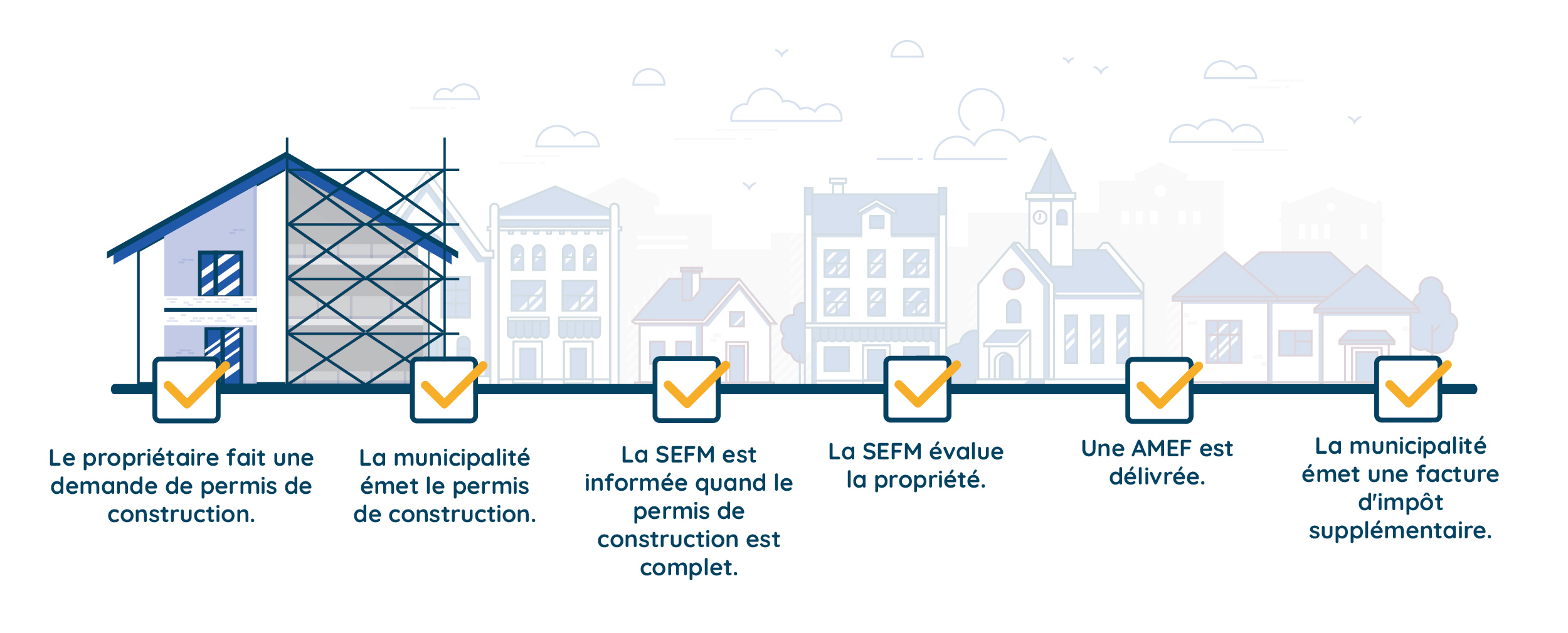 Ensuite, votre municipalité émettra une facture d'impôt supplémentaire/ complémentaire. Cette nouvelle facture d'impôt reflétera la modification de l'évaluation.